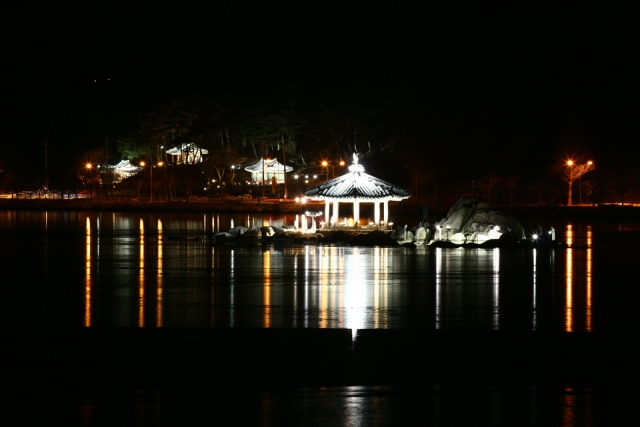아니면 옛 선인처럼 5개의 달을 찾아 헤매이거나... 어떤 계절이라도 보름 무렵 강릉에 온다면 경포대 정자는 출입금지라 못 들어가지만 주변의 벤치나 계단에서라도 이런 운치를 맛볼 만하다.