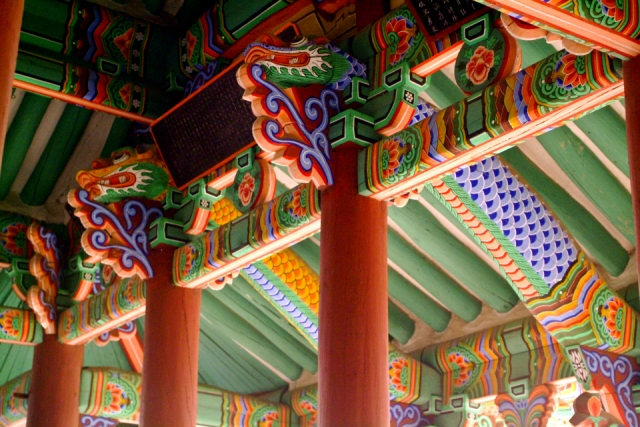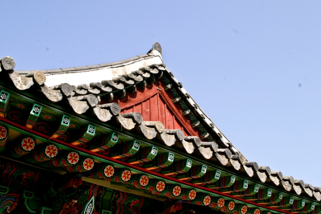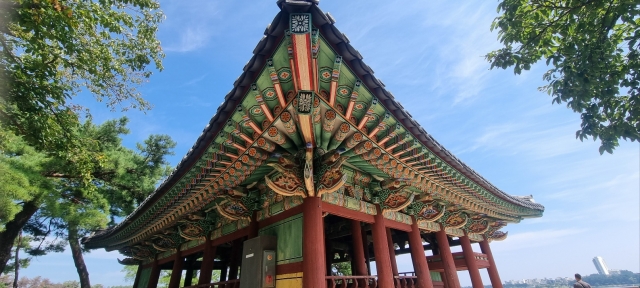 한옥 기와집의 아름다움을 자랑하는 경포대의 추녀와 처마