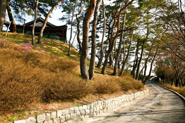 경포대 매표소 옆으로 경사진 야트막한 언덕길을 오르며 볼 수 있는 푸른 소나무 숲.