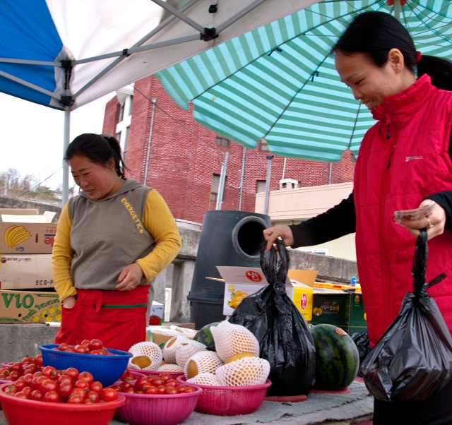 여느 시골의 한적한 장터와 다를 바 없지만, 좌판을 벌이는 장꾼들의 입가에도, 흥정을 하는 객들의 입가에도 미소가 떠나질 않는다.