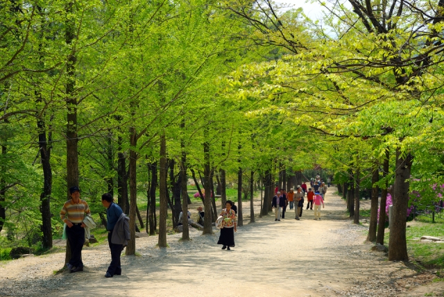 은행나무가 울창한 가지를 서로 맞잡고 내어준 길은 눈앞에서 시원하게 뻗어나가며 걸음을 재촉한다. 오르막길이 아무리 힘에 부쳐도 머리 위에서 한들거리는 잎새들의 움직임을 느끼며 걸어 오르다 보면 괜스레 기분이 좋아진다.