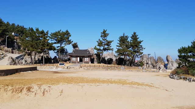 추암해수욕장에서 촛대바위를 보고 내려가다가 능파대 서쪽으로 가면 ‘해암정’이라는 정자가 보인다.