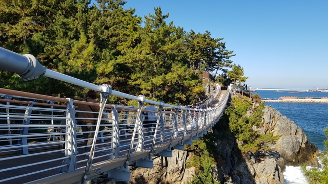 바다 위를 건너는 출렁다리에서 느끼는 아찔한 풍경은 짜릿한 감동이 되어 마음을 울린다.