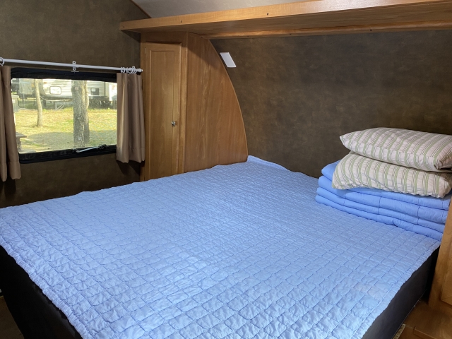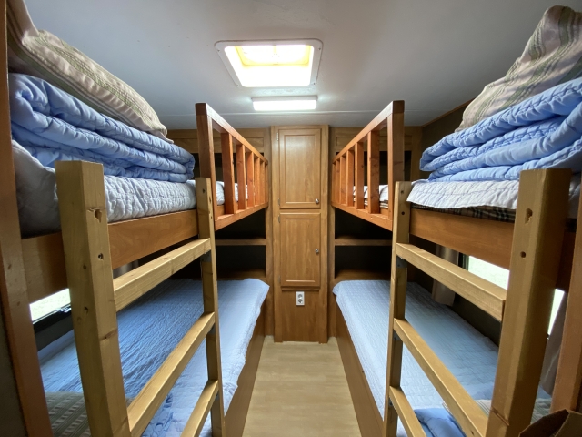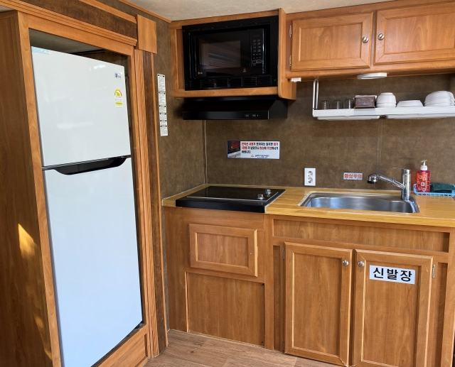 캐라반에는 화장실, 침실, 씽크대 및 식기류, 2층 침대, 냉장고 등 여느 숙박 업소 못지 않은 편의시설이 잘 갖춰져 있다.