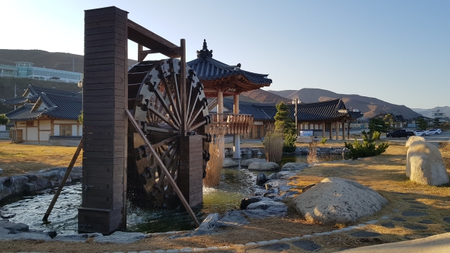 캐라반이 즐비한 망상오토캠핑리조트의 이국적인 풍경을 지나면 한가롭게 돌아가는 물레방아와 팔작지붕이 멋들어진 한옥이 시선을 사로잡는다.