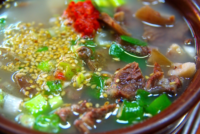 북평 민속오일장의 유명한 국밥거리에서 맛볼 수 있는 얼큰하고 담백한 소머리국밥