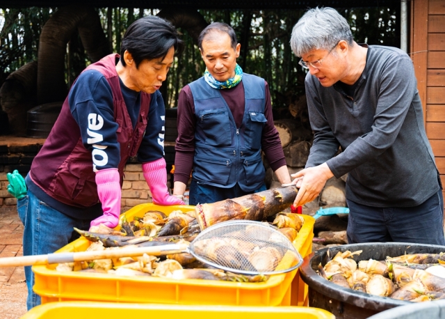 - 죽순 채취 -> 세척 -> 삶기 -> 냉각 -> 자르기 -> 껍질 까기 -> 냉각 -> 진공포장하기 -> 출고