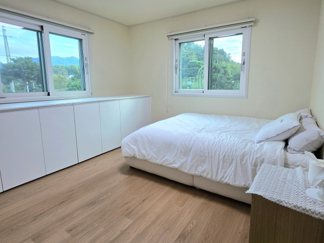 넓은 퀸침대와 폭신한 침구 높이가 다른배게로 편안한 꿀잠 되세요. 청결,소독,세탁을 중요시하여 관리중입니다.