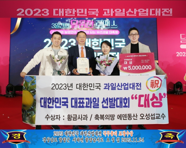 '2023년 대표과일 선발대회'에서 사과(시나노 골드)가 대상을 수상하였습니다.