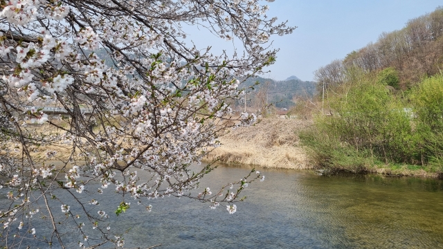 농가 앞 계곡에 봄이 활짝 피었습니다.