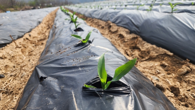 따뜻한 봄 날 찰옥수수를 심고 있습니다.