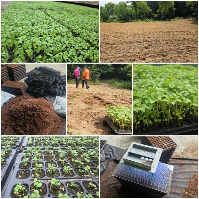 7월 씨앗을 포트작업하여 모종을 키워 본밭에 정식합니다.