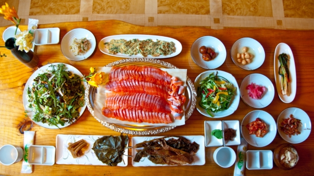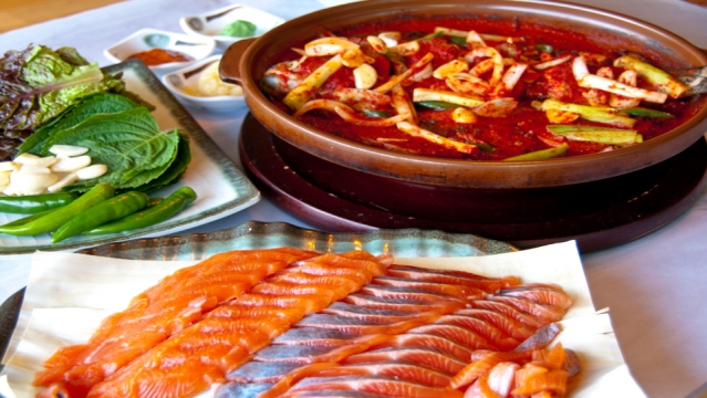 산간계곡 맑은 물에서만 서식하는 송어는 붉은 속살에 윤기가 더해져 한점 집어 먹으면 고소한 맛이 꽃향기처럼 입안에 가득 퍼진다.