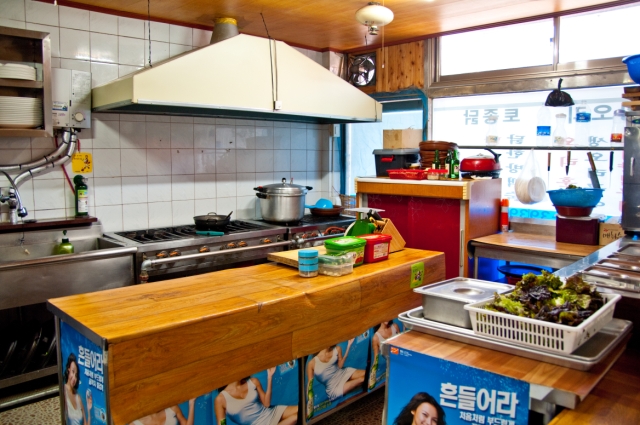 가게로 들어서는 입구 오른쪽으로 바로 보이는 주방은 깔끔하게 정리되어 있다.