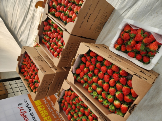 횡성군 우천면에서 고설방식으로 설향 딸기를 재배하고